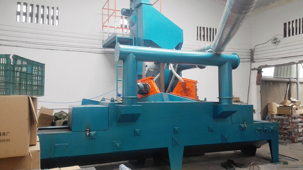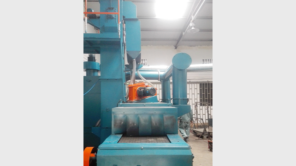 履带式抛丸机是通过高强度耐磨橡胶履带的传动,带动工件做翻转运动,它利用高速回转的叶轮,将弹丸抛向室体内的工件上,达到清理的目的。从而使工件得到均匀、有效清理。它主要适用于易翻转的各类中小、工件的清理,已广泛应用于五金、汽车摩托车配件、轴承、压铸、精铸以及各类中小锻件、冲压件、齿轮、铸件、弹簧的加工清理或强化等。特别适用于不怕碰撞的零件的清理及强化。